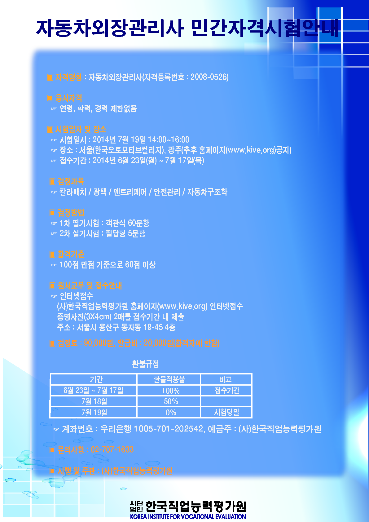 1. ÀڰݸíĪ : ÀÚµ¿Â÷¿ÜÀå°ü¸®»ç(Àڰݵî·Ï¹øÈ£ : 2008-0526)