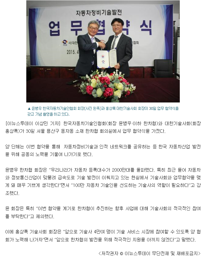 ´ëÇѱâ¼ú»çÇùȸ ¾÷¹«Çù¾à ÀÌ´º½º Åõµ¥ÀÌ º¸µµ