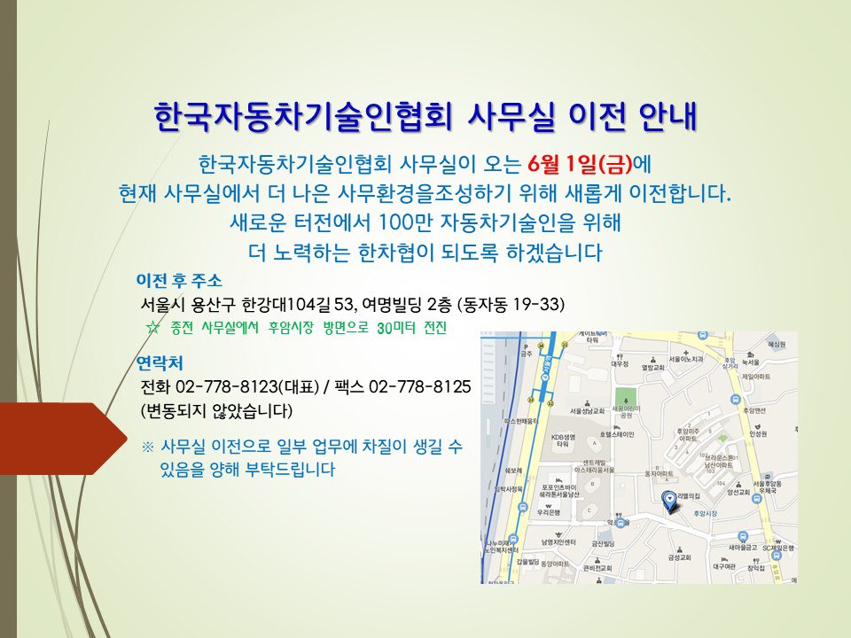 ![]() »ç¹«½Ç ÀÌÀüÀº ÁÖ¸»À» ÀÌ¿ëÇÏ¿© ÁøÇàÇÏ¿À³ª »ç¹«½Ç Á¤¸® µîÀ¸·Î ÀÎÇØ ÀϺΠ¾÷¹«ÀÇ Â÷ÁúÀÌ ÀÖÀ½À» ³Î¸® ¾çÇØÇØ Áֽñ⠹ٶø´Ï´Ù. ÇÑÂ÷Çù »ç¹«Ã³ Á÷¿øµéÀº ¾÷¹«°ø¹éÀ» ÃÖ¼ÒÈÅä·Ï ³ë·ÂÇϰڽÀ´Ï´Ù. 1. ÀÌÀü ÀÏÀÚ : 2018. 6. 1.(±Ý) 2. ÀÌÀüÀå¼Ò : ¼¿ï½Ã ¿ë»ê±¸ ÇѰ´ë·Î104±æ 53, ¿©¸íºôµù 2Ãþ ¡Ø ÇöÀç »ç¹«½Ç¿¡¼ ÈľϽÃÀå ¹æ¸éÀ¸·Î 30¿© ¹ÌÅÍ À̵¿ 3. ¿¬¶ôó º¯µ¿Àº ¾øÀ½ £ª ÀüÈ : 02-778-8123 £ª ÆÑ½º : 02-778-8125 £ª À̸ÞÀÏ : kaat001@naver.com |