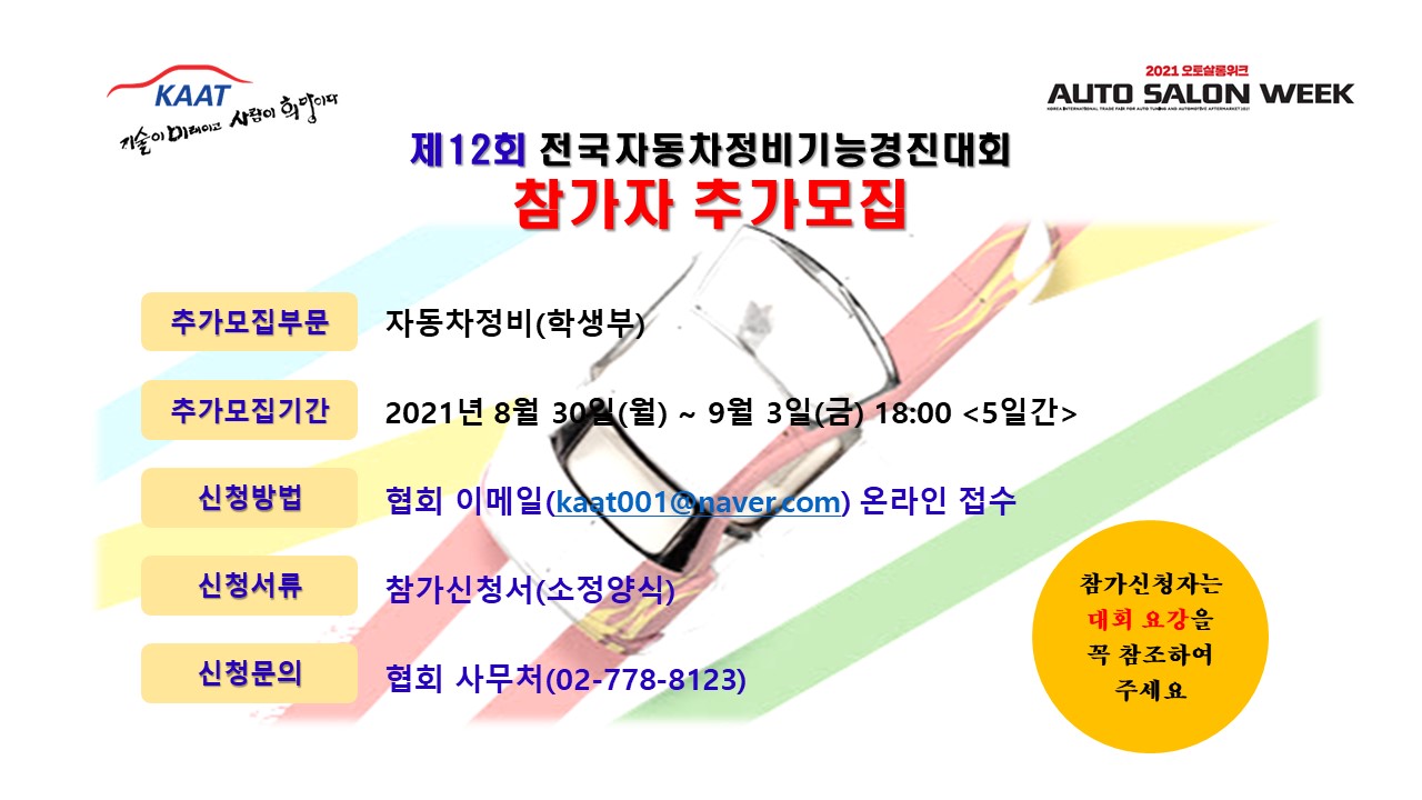 | ÷ºÎÆÄÀÏ | 2021 ÀÚµ¿Â÷Á¤ºñ±â´É°æÁø´ëȸ Âü°¡ÀÚ Ãß°¡¸ðÁý ¾È³».jpg |