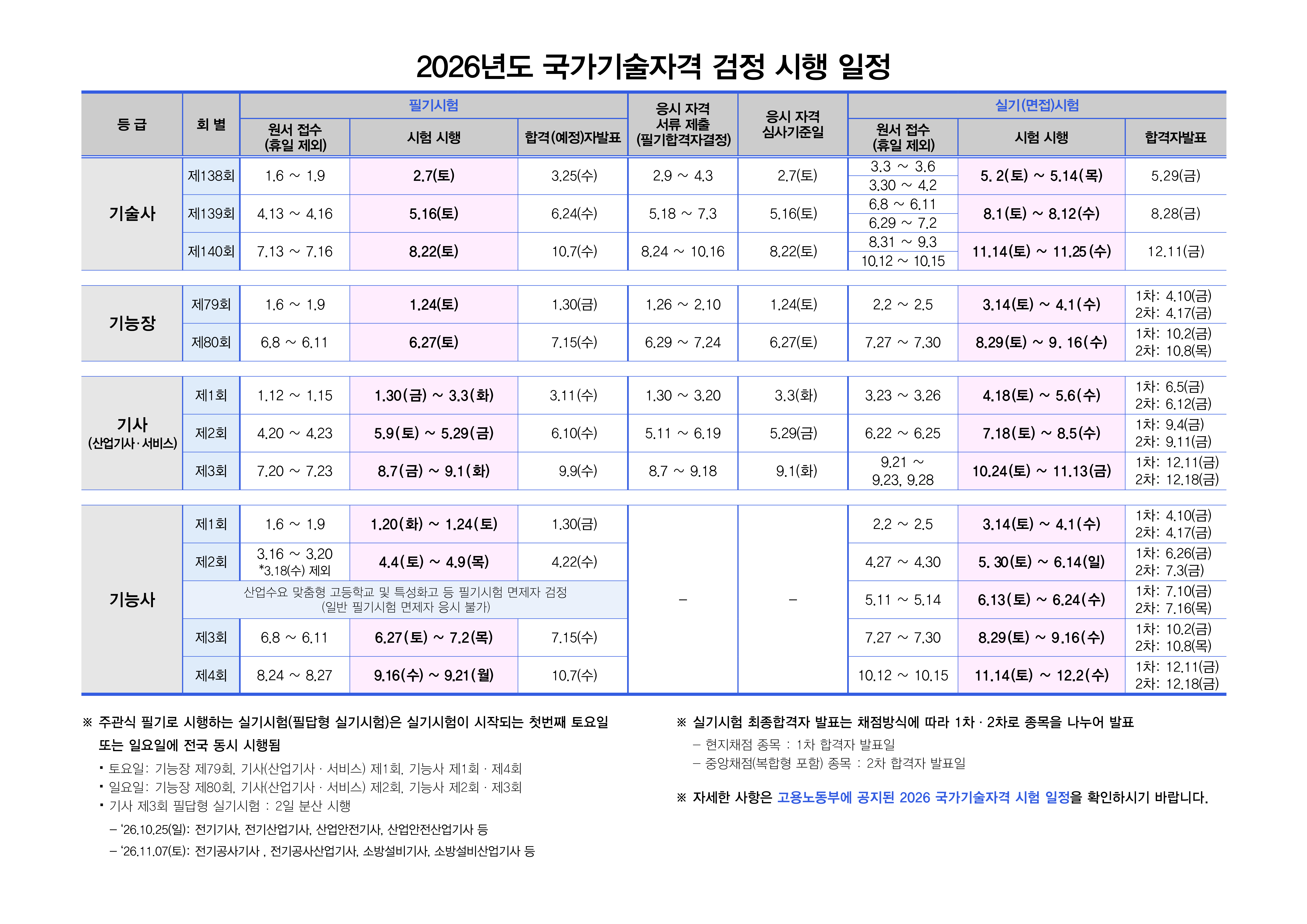 2026³âµµ ±¹°¡±â¼úÀÚ°Ý °ËÁ¤(½ÃÇè)ÀÏÁ¤ÀÌ Çѱ¹»ê¾÷Àη°ø´Ü Q-net¿¡ °øÁöµÇ¾î ÀÖ¾î À̸¦ ¾È³»ÇÏ¿À´Ï °ü·Ã ÀÚ°ÝÀ» ÁغñÇϽô ȸ¿ø°ú ÀϹÝÀβ²¼´Â ÂüÁ¶ÇϽñ⠹ٶø´Ï´Ù
