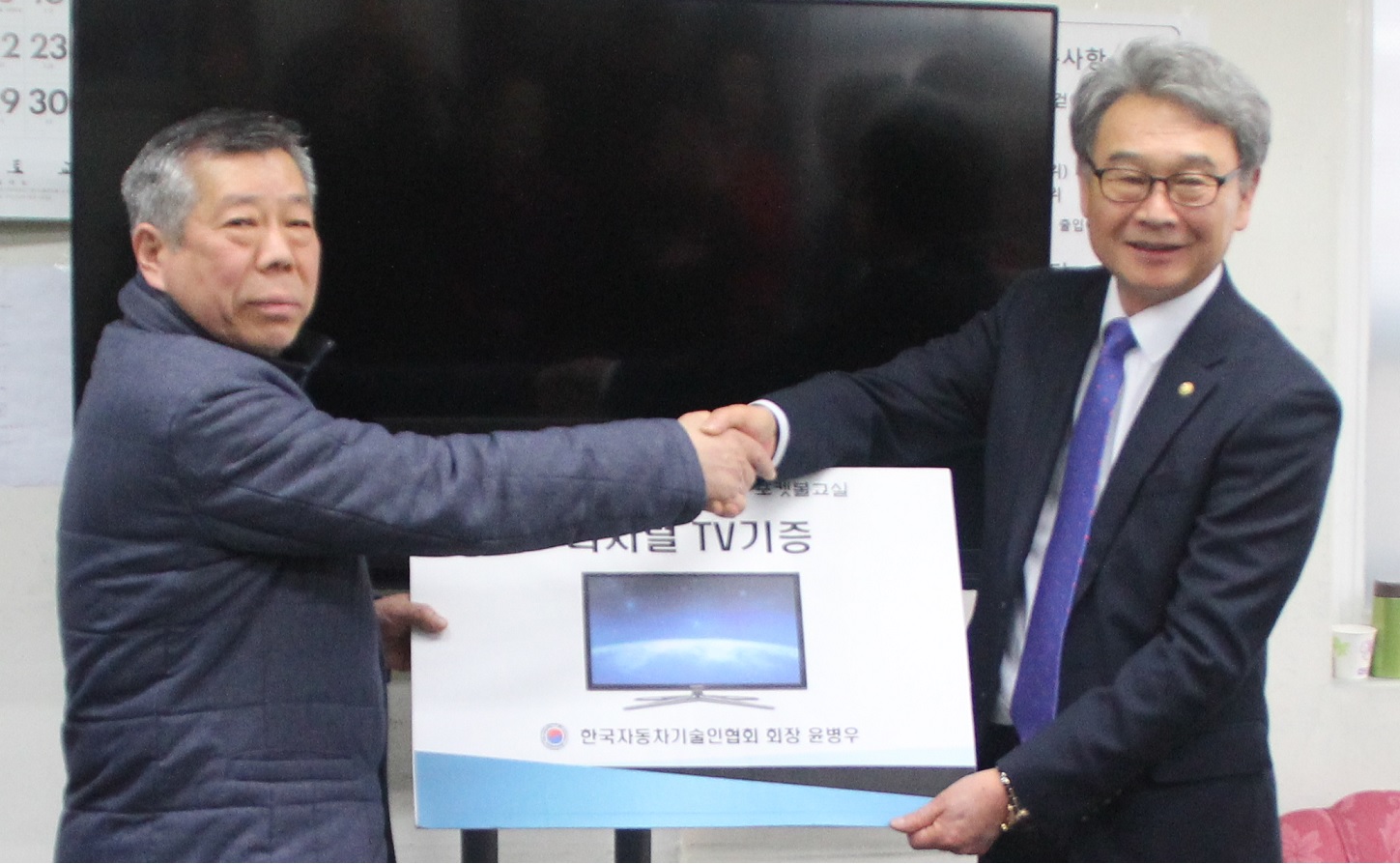 Çѱ¹ÀÚµ¿Â÷±â¼úÀÎÇøÈ¸ À±º´¿ì ȸÀåÀº ³²¿µµ¿Áֹμ¾ÅÍ(µ¿Àå ¸¶Çʽ / ³²¿µµ¿, µ¿ÀÚµ¿, °¥¿ùµ¿) °ü³» ¾î¸£½ÅµéÀÌ ÀÌ¿ëÇÏ´Â Æ÷ÄϺ¼±³½Ç¿¡ ¿©°¡È°¿ëÀ» À§ÇÑ µðÁöÅÐ TV 1´ë¸¦ ±âÁõÇÏ¿´´Ù.