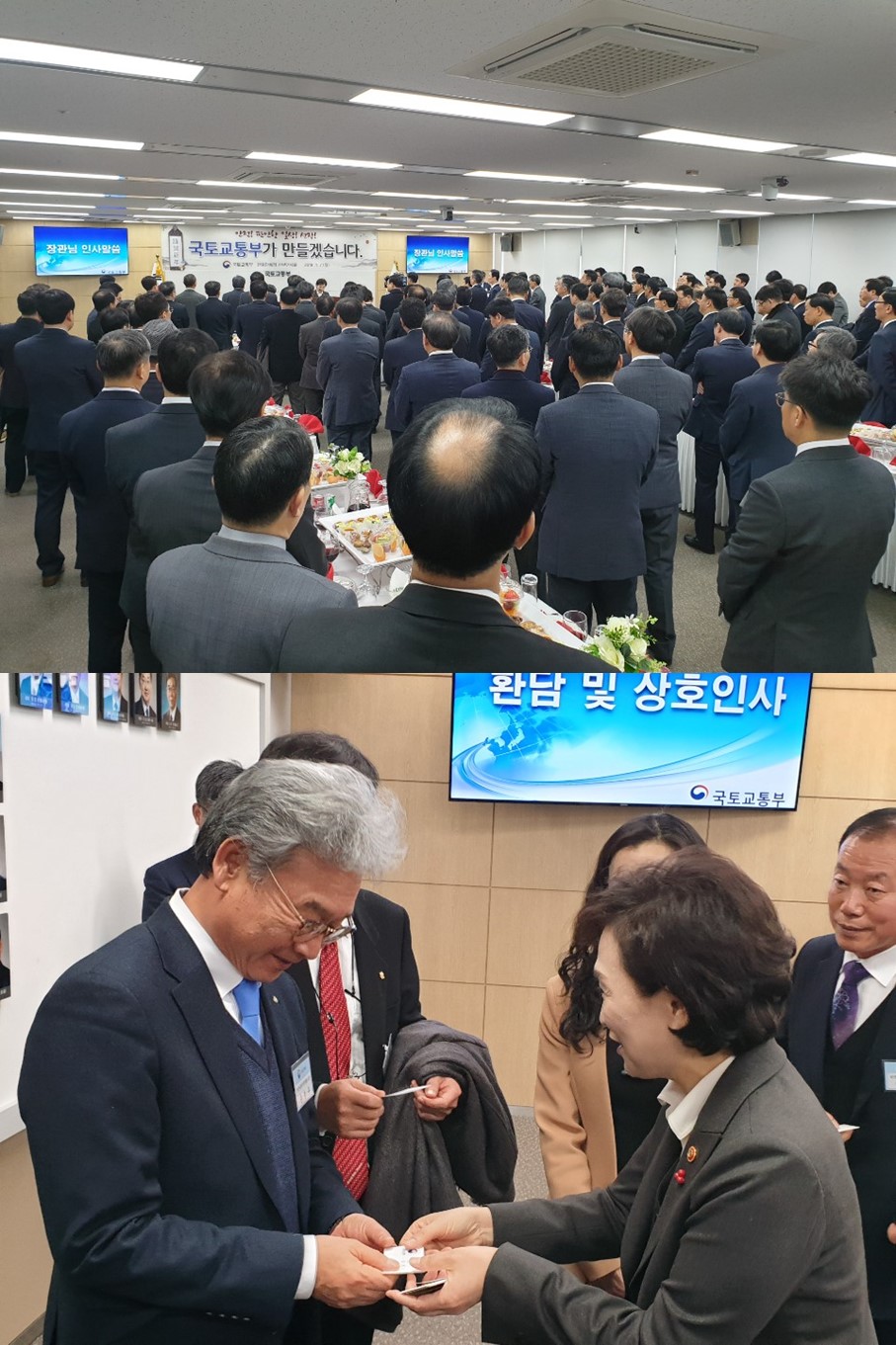 | Çѱ¹ÀÚµ¿Â÷±â¼úÀÎÇùȸ À±º´¿ì ȸÀåÀº 1¿ù 7ÀÏ(¿ù) ¿ÀÀü 11½Ã Á¤ºÎ¼¼Á¾Ã»»ç 6µ¿ 5Ãþ ´ëȸÀǽǿ¡¼ °³ÃÖµÈ 2019³â ±¹Åä±³ÅëºÎ »êÇÏ´ÜüÀå ½Å³âÀλçȸ¿¡ Âü¼®ÇÏ¿© ±èÇö¹Ì Àå°ü, ±èÁ¤·Ä Á¦2Â÷°ü ¹× ¼Õ¸í¼ö ½ÅÀÓ ±³Åë¹°·ù½ÇÀå µî°ú Àλ縦 ³ª´³À¸¸ç, ±× ¿Ü ±³ÅëºÐ¾ß ´ÜüÀåµé°úµµ ±³·ùÇÏ¿´´Ù. |