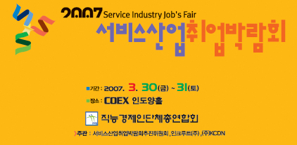2007 ¼ºñ½º»ê¾÷Ãë¾÷¹Ú¶÷ȸ´Â ±¹³» ÃÖÃÊ·Î ¿¸®´Â ¼ºñ½º»ê¾÷ºÐ¾ßÀÇ Æ¯È Ãë¾÷¹Ú¶÷ȸ·Î¼, ÀÏõ¸¸ Á÷´É°æÁ¦ÀÎÀÇ ±³·ù¿Í Çù·ÂÀ» µµ¸ðÇÏ°í ³ª¶ó°æÁ¦ÀÇ Áß½ÉÀÌ µÇ´Â ¼ºñ½º»ê¾÷ÀÇ ÀÏÀÚ¸®¸¦ âÃâÇÏ¿© ¼ºñ½º»ê¾÷ÀÇ È°¼ºÈ¿Í µ¿½Ã¿¡ °æÀï·ÂÀ» °ÈÇÏÀÚ´Â ÃëÁö·Î ±âȹµÇ¾ú½À´Ï´Ù.