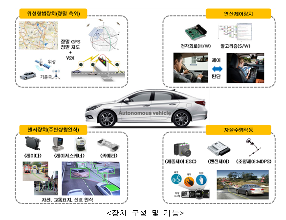 ¤· Á¤ÀÇ - ¿îÀüÀÚÀÇ ¿îÀüºÎÇÏ °æ°¨ ¹× »ç°í¿¹¹æÀ» À§ÇØ ÀÚµ¿Â÷¿¡ ÀåÂøµÈ °í¼º´É ¼¾¼(·¹ÀÌ´õ, Ä«¸Þ¶ó, GPS µî)¿Í °íÁ¤¹Ð Áöµµ µîÀ» ÀÌ¿ëÇÏ¿© ¿îÀüÀÚ¸¦ ´ë½ÅÇØ ¸ñÀûÁö±îÁö ÀÚµ¿À¸·Î ÁÖÇàÇÏ´Â ÀÚµ¿Â÷ <ÀåÄ¡ ±¸¼º ¹× ±â´É>